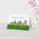 This holiday blank inside greeting card features rabbits playing in the grass and colorful Easter eggs. A cute notecard for the spring season holiday.
