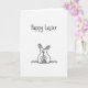 This card features a mostly white background with two small rabbits drawn in thin black outlines and soft gray shading, placed near the lower center. They lean into each other in a close cuddle, their heads gently touching as if sharing a quiet moment of friendship 🐇. A few light marks beneath them suggest short grass, keeping the scene grounded without adding clutter. Near the top, the words “Happy Easter” appear in a flowing, handwritten-style lettering in black, centered above the pair. The wide open space around the artwork makes the rabbits’ tender pose stand out, like they’re the only two in the world for a second 🌷. The simple monochrome look keeps attention on their relaxed ears, rounded cheeks, and the soft curve of their bodies. Under the rabbits, the tiny grass strokes sit just above the bottom edge of the card.