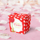 Modern bright Easter tulip paper favor or gift boxes in green red and white. Pretty watercolor tulip art and a polka dot background. Personalized with your own families name or Easter event. Ideal for gifting chocolates sweets or other small gifts. Original watercolor art and design by Sarah Trett. www.sarahtrett.com for www.mylittleeden.com