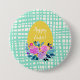 Happy Easter floral egg. Cute floral orange egg with retro plaid pattern background. Retro rustic Easter button