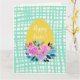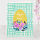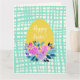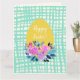 Happy Easter floral egg. Cute floral orange egg with retro plaid pattern background. Retro rustic Easter folded card