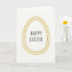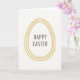 Designed with a minimalist Easter look, this card sits on an off-white background that feels airy and calm 🌷. Centered on the front is an egg-shaped outline made from three concentric, slightly uneven lines in antique gold, giving it a softly textured shimmer. The gentle irregularity in the gold lines adds a human touch, like a quiet nod from one friend to another. Inside the egg shape, the words “HAPPY EASTER” appear centered in a light grey, simple letter style that keeps the focus on the warm gold border. The cool grey text and the warm metallic tone balance each other in a way that feels like an easy, affectionate exchange rather than something formal. With lots of open space around the central shape, the design feels uncluttered and relaxed, like a small gesture shared between close people 🐇. The golden egg outline sits squarely in the middle, with “HAPPY EASTER” placed neatly inside it in grey.