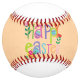 This design takes the familiar look of a classic softball and transforms it into a cheerful Easter celebration piece. The ball keeps its traditional structure—white surface, tan leather ends, and bold red stitching—but the center becomes a canvas for bright holiday charm.