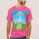 My 11 yo wore adult XL (5’7” 165#). The 8yo is small framed. She wore adult small and tied it in the back. Grandma wore adult large with long sleeve shirt underneath. Tall girl adult medium. Dark haired male adult large. Good quality dark Heather gray, Gildan brand shirt. -it was next up from basic choice and cost about $20 per shirt. Not too thick or thin. Washed and dried well, no major shrinkage. Not see-through. Can wear a bra under it fine. Screen print is just as shown and well done, front and back.