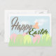 A delicate Happy Easter Joyeuses Pâques card with bell, eggs and grass in tender pastel colors.