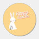 White Happy Easter text with white bunny on orange background design.