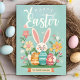 This cute Easter card features pastel colors of green, pink, yellow and blue with the words "Happy Easter" in a decorative script over a white bunny rabbit holding three decorated Easter Eggs amidst an array of pastel colored flowers with the words "To Everybunny" underneath. Personalize by customizing the message inside and/or adding your names(s) - you can also leave those fields blank if you wish to add a handwritten message or signatures later.