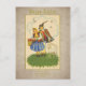 This cute vintage-style Easter design features a delightful country scene with a man, a woman and a Spring lamb. The woman is carrying a basket of Easter eggs and the man is holding willow stems. You can personalize the greeting, family name, and year by adding your own text.