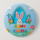 Happy Easter | Whimsical Easter Bunny and Floral Button
