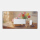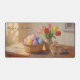 Happy Easter with Colorful Eggs and Tulips Desk Mat