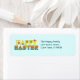Happy Easter. Cheerful, cute Easter address lables. The word Happy is in a bright cheery yellow, and the word Easter is in an ombre rainbow of color. Both are overlain with flowers. You can personalize the text in our easy to use template. You can change the background color if you like, just go to customize. This design is on other fun items in my shop.