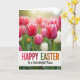Designed with a sunlit spring meadow in mind, the scene shows pink and magenta tulips with a few small white blooms scattered between them 🌷. A close cluster of flowers sits in sharp focus, including one deep magenta tulip just right of center whose petals meet crisp white edging, like a gentle touch between close friends. Behind them, the field softens into a blurred wash of pinks and greens, as if the flowers are leaning toward one another in quiet company. Warm golden light glows from the upper background, giving the petals a tender, romantic sheen without stealing detail from the foreground. Fresh green stems and leaves rise throughout, adding contrast and guiding the eye upward. A white banner stretches across the lower third, with “HAPPY EASTER” set in large, multicolored letters in pink, green, and orange, followed by “to a Wonderful Niece” in smaller dark cursive underneath 🐰. The banner sits over the stems, and the bright letters stand out against the white strip while the golden light lingers at the top edge of the blurred background.