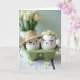 Designed with two smooth white eggs as the main characters, the scene places them snugly in a pale green, textured carton like they’re sharing a quiet moment together 🐰. One egg wears a tiny straw hat, its brim shading closed eyes and a small smile, with soft lashes and rosy cheeks that suggest calm affection. Beside it, the other egg has a little crown of white flowers with yellow centers, smiling wide with curved lashes and bright pink cheeks, as if leaning into the company 🐇. The setting rests on distressed white wooden planks, where a few loose petals sit near the carton like gentle confetti. Soft, airy light falls across the eggs’ matte surfaces and the carton’s fibrous texture, adding depth without harsh shadows. In the background, a simple pot holds pale blossoms, slightly out of focus, with a muted mint-green wall behind them. Centered near the top, the greeting appears in a light, spring-green font, with a smaller line of text beneath it in soft gray.