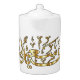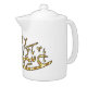 An elegant porcelain teapot with golden colored Islamic calligraphy offering "Eid Saeed" or "Happy Eid!" - a nice gift for Eid celebrations.