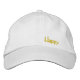 The design was easy to do with a number of options both the hat style, color and so forth. These aren't some printed letters, these are the real deal stitching. The two hats arrived quickly. I've used Zazzle in the past for shirts a number of times and this is the first time for a hat. Zazzle is absolutes the best in every respect; customer service, product selection and results. The embroidery was just right. My artwork was turned into a professional look thanks to Zazzle.