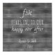 Wedding Anniversary photo cube which you can personalize for any years and add 4 of your favorite pictures. The wording reads "# years in to our happy ever after" and the template is set up ready for you to add the anniversary year, your name and date established. The design has a grey rustic country wood look, lettered with casual script and skinny font typography. If you have any problems with placement of your pictures, trying cropping to a square shape before uploading.