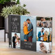 Wedding Anniversary photo block which you can personalize for any years and 5 of your favorite pictures. The wording reads "# years in to our happy ever after" and the template is set up ready for you to add the anniversary year, your name and date established. The design has a distressed chalkboard look, lettered with casual script and skinny font typography. Upload your photos, working from left to right, which will be displayed in a mix of portrait, square and landscape formats. If you have any problems with placement of your pictures, trying cropping to the relevant shape before uploading.