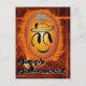 Customizable postcard with a happy face jack-o-lantern on a pumpkin photograph makes a great Halloween postcard. The background is a fiery computer generated fractal design. Fill in the template block to add your own text or click "Customize it" to select a font style, color and size or change the black background image with a color. Use postcards for thank you notes, event announcements, new address and more. Even use it for an invitation and save on the postage costs.