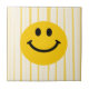 Happy Face on sunny yellow stripes Ceramic Tile