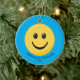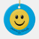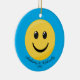 Join the emoji crazy! Personalize this ornament with your name and the one you love and add a date too or you can personalize with one name. It has a bright blue background with a happy smiling face emoji. Check out the many other emoji ornaments we offer in our store.