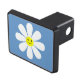 Brighten someone's day with this smiling daisy trailer hitch cover. It has a cute emoji flower on a blue grey background.
