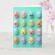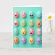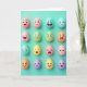 Designed with a tidy grid of sixteen egg-shaped characters, this card sets a friendly scene against a smooth teal background 🌷. Each little figure is shaded in soft pastels—pinks, blues, greens, yellows, oranges, and purples—so the whole layout feels gentle and inviting. Their faces do the talking, with wide smiles, winks, surprised “O” mouths, and calm closed eyes that make them seem like a group of close friends sharing a moment. A few expressions lean toward tender and bashful, like they’re stealing glances at a neighbor in the next square 🐰. Soft, diffused light gives the rounded shapes a matte look and leaves faint shadows that keep everything looking dimensional without any harsh contrast. There’s no headline crowding the artwork; instead, any greeting text would sit neatly along the top or bottom in a small, simple font, colored to match the pastel palette. One sunny yellow egg stands out with a pink heart on its front, centered clearly within its square.