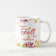 Cozy up to Fall with this Happy Fall Y'all mug. Features rich reds, bright yellows and colorful burgundy autumn leaves. Personalized with your name. Perfect for your favorite pumpkin spice drink and fun Fall celebrations. Makes a great gift!