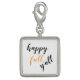 Cute and sassy Autumn charm! Pretty trendy script typography in black and orange says "happy fall y'all". White background. Great jewelry for this Fall/Autumn!