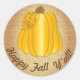 Happy Fall Y'All sticker is perfect for a fall party! Created by Talking Dog featuring an original pumpkin and a burlap background.