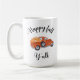 A cute fall seasonal coffee mug with the quote happy fall y'all.
