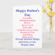 A list of things a Father does, Counsellor, Sports Coach,Taxi Driver, and more. Thanks Dad. With a joke inside too. Add name and your own personal message if you want.