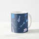 This design features a navy blue background with a tie, hat, mustache, screwdriver, coffee mug drawings etc