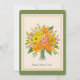 This card features a beautifully illustrated bouquet of vibrant flowers, including sunflowers, orange blossoms, and delicate pink blooms, arranged in a clear vase. A thin gold frame and a solid green border add a touch of elegance. The message "Happy Father's Day" is written in a simple, classic font below the floral arrangement. This card offers a colorful and heartfelt way to celebrate Father's Day. Downloadable and printable for your convenience.