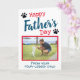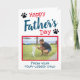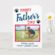 Pooches, show your Dad some love this Father’s day with a personalized card just from you. Upload a photo taken of yourself or with your human (4 x 6 inch ratio will work best). The design has a red and blue theme with black paw detail and "Happy Father's Day from your four-legged child written on the front. Inside message reads “I love you more than walkies, Happy Father’s Day” but can be changed to whatever you would like to write. The font style and colors and be changed.