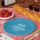 Happy Father's Day Papa Personalized Paper Plate. Beautiful teal blue paper plate for a loved DAD'S Father's Day Celebration. Elegant classic teal blue background with fancy decorative white script, you can personalize quickly and easily. High-quality strong paper plate, colors won't run when wet. Click image to personalize it, all text is customizable. 30 Day Money Back Guarantee. Ships Worldwide fast.