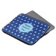 Navy blue background with soft blue polka dots... soft blue center circle with navy blue cursive lettering and periwinkle blue accents...