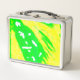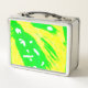 This is a standard metal lunchbox that appears to work just fine. We designed this box ourselves with an uploaded photo and custom text on the front and back. It looks absolutely beautiful except the front of the lunchbox is not centered like it shows in the photo. The print borders don't align with the inset flat part of the box where the preview photo online showed it perfectly centered in there. The back looks nice and centered though.