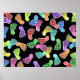 Illustration of lots of colourful footprints with happy smiling faces stomping around against a black background. Image available on various gifts and products.