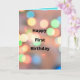 Brown with different colored lights with Happy First Birthday black writing in front.