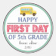 School Bus Happy First Day Of 5th / Fifth Grade / Grader School Favor Labels / Stickers (Green / Blue / Red / Black / White)...These fun and cute happy first day of school labels / stickers are ideal for back to school treats and gifts for students. Whether you're celebrating the first day of kindergarten, first (1st) grade, second (2nd) grade, third (3rd) grade, fourth (4th) grade, fifth (5th) grade, sixth (6th) grade, seventh (7th) grade, eighth (8th) grade, preschool / pre-school, high school, etc....these stickers are perfect for any occasion. Welcome your students or classmates back to school for a fun and educational new school year. Fully customizable...just change the name of the teacher or the student and the school year and your favor stickers are ready to be used. Great for any teacher to hand out to her classroom of new students. Also perfect for any student to bring attached to goodies for his or her new school mates in class. Available in a wide range of colors. See WindyCityStationery.com for our complete line of labels in a wide range of colors as well as matching postage stamps, thank you cards, return address labels, save the dates, graduation class of stickers, wedding favor stickers, and more.