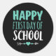 Happy First Day Of School Teacher Student Arrow C Classic Round Sticker