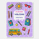 Happy First Day Of School! motivation quotes, back to school, WELCOME / BACK TO SCHOOL / I LOVE SCHOOL GRAPHIC DESIGN / GRADUATION, Kids Party Decoration, Gifts, Colorful, Cartoon. Teacher Day, Gifts Graduation for boys and girls, Announcements Graduation, Classroom, Captions Graduation, Card, Messages, Graduation Ceremony, First Grade, Welcome Poster, Graduation Decorations, Graduation Quotes, Modern Design, cute, funny, cartoon / 1th Grade / 2th / 3th / 4th / 5th / 6th /- two sides (front and back), with Smiley icon and text template. Personalize them by adding Date, School Name, Family name or wishes text.