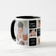 Unique first father's day gift idea -A modern photo coffee mug with a collage grid created with 5 pictures and message on a trendy black color block.