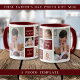 Unique first father's day gift idea -A modern photo coffee mug with a collage grid created with 5 pictures and message on a trendy Maroon color block.