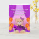 This adorable teddy bear in a Halloween ballerina outfit is standing on stage with orange balloons and a purple curtains makes a wonderful halloween card for a first halloween for your granddaughter.