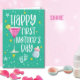 Happy First Mother's Day card is the perfect way to honor and celebrate the incredible journey of motherhood. Give the gift of joy, love, and cheers with this delightful card that captures the essence of this momentous occasion. The vibrant colors and intricate details of the design are sure to catch the eye and bring a smile to the recipient's face. View the matching Happy First Father's Day card in our store.