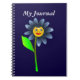 The design shows a cute flower character drawn and painted with Inkscape by Ulla Hennig. The design is placed on a dark blue background, together with the title "My Journal". You can easily change the colour of the background and insert your own words by clicking on the "customize it" button.