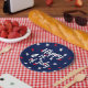 Happy fourth of July script red white and navy blue stars pattern holiday Party Paper Plates.