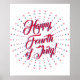 Happy Fourth of July script red white & blue stars Poster