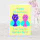 Cute Owl Couple. Add name to front of anniversary card, change number of years, and any extra message and names inside. A pair of cute pink and blue owls. Fourth shown here.